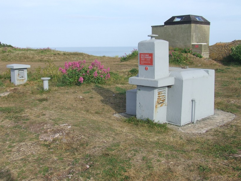 This post was opened in 1960 and closed in 1991. It is fitted with two new padlocks and is within one of the two Berry Head forts, on a nature reserve, but unfortunately there was no one on site to ask about access. It has an unusually high GZI mount, and has been fitted with a plaque explaining its function. A WW2 ROC aircraft observation post stands nearby.